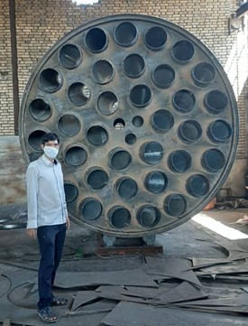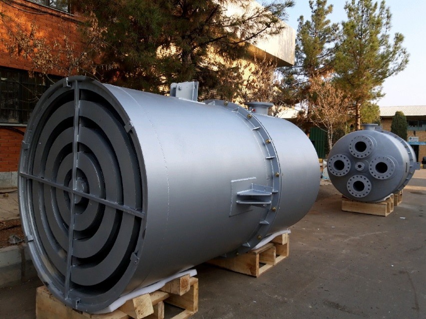 Examples of vent silencers manufactured by the company are shown in Figure 1. Figure 1(a) illustrates a vent silencer equipped with four inlet nozzles and an annular baffle configuration. Figure 1(b) presents the smallest vent silencer, with a length of 15 cm. Figures 1(c) and 1(d) show two vent silencers featuring circular baffle arrangements with varying diameter configurations. The silencer shown in Figure 1(c) is a large-scale unit manufactured by the company, with a diameter of 3.2 meters, a length of 6.5 meters, and a total weight of 9.5 tons.